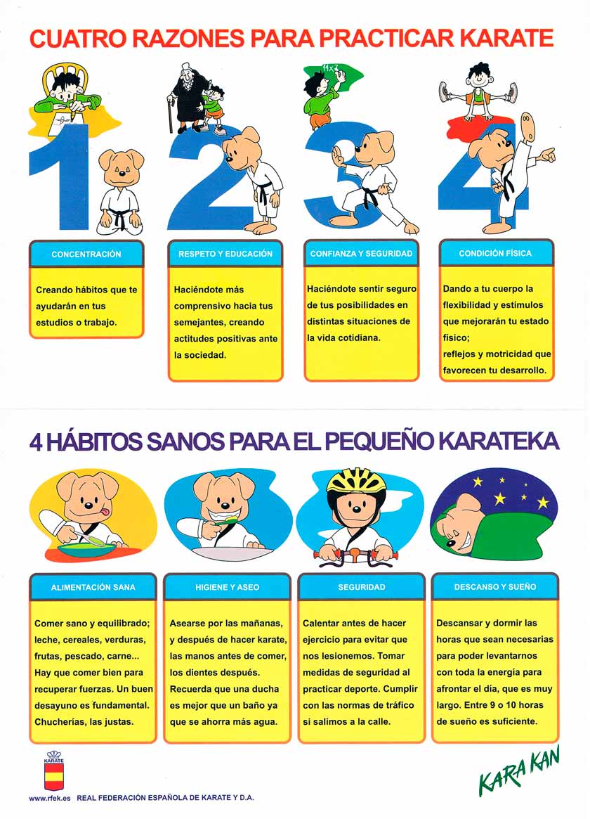 El entrenamiento que recibe el alumno de Karate es especial, porque incluye la preparación físico-atlética y el desarrollo de sus habilidades para que sean utilizadas con espiritu combativo, en el deporte y en la defensa personal, pero nunca para la agresión o la violencia, porque en su mentalidad madura está firme la idea del respeto hacia los demás.