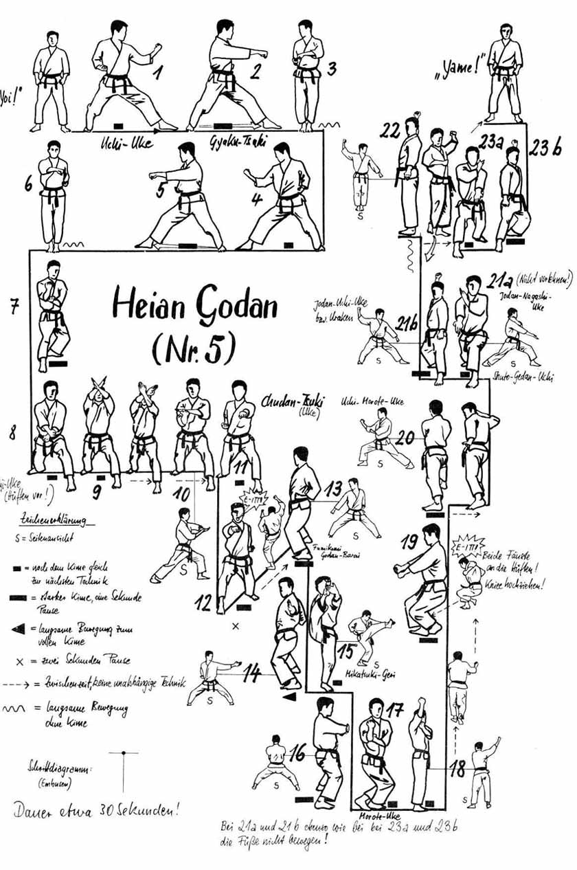 En el estilo Shotokan se llaman Heian, aunque en otros estilos como el Shito Ryu, se conocen como Pinan (también el Pinan Shodan es el Heian Nidan).