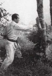Su entrenamiento consistía en sentarse a meditar bajo las frías aguas de las cataratas, luchando con animales salvajes, rompiendo arboles y piedras del río con sus manos, usaba los árboles como makiwara, saltar sobre el rápido crecimiento de las plantas de lino cientos de veces todos los días. En su entrenamiento diario incluyó también un período de estudio de los antiguos textos clásicos de las artes marciales basados en la filosofía Zen, y los escritos del famoso guerrero samurai Miyamoto Musashi.
